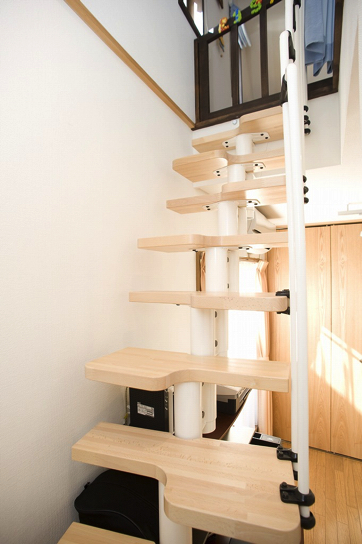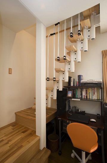 娘さんが自由に行き来できるように、お父さんの書斎とお母さんのお部屋からも上り下りできる階段を設けました。