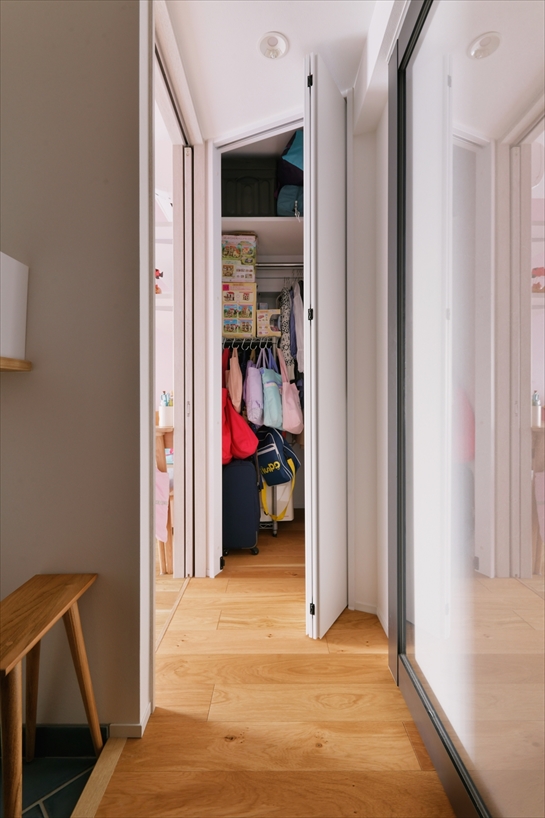 2つの洋室はそれぞれベッドとデスクが置ける広さの子ども部屋に改修し、削った分の面積にはWICを設けました。2つあることで収納量が大幅に増え、大人と子どもで使い分けたり、シーズンごとに衣類を入れ替えたりとフレキシブルに活用できます。