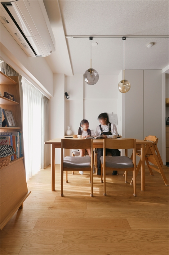 ご両親から受け継いだご実家マンションにお住まいのK様ご家族。水回り設備の老朽化に加え、1階で断熱性が足りないことから、結露とカビでお悩みでした。また、お子様たちが成長するにつれて、子ども部屋として使える個室や収納を増やしたいというご要望も挙がりました。