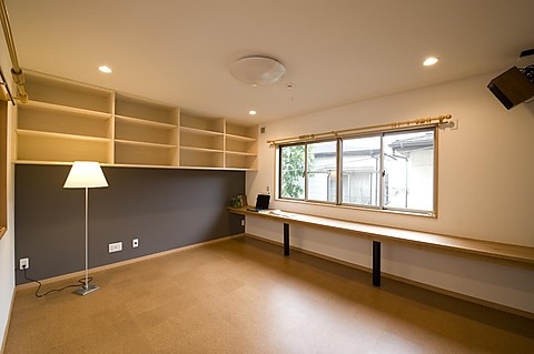 また、家族の一員であるネコちゃんのために、収納や壁の下部を開けて、食事やトイレのスペースも確保。畳スペースの壁は上部がキャットウォークになっています。DIY好きなKさん自身もリビングの壁の一部を塗り壁や黒板塗装にしたり、2階の音楽室と和室内部を仕上げ施工したりと、手をかけながら作りあげた住まいです。