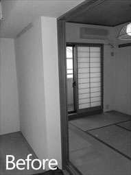 リビングに隣接していた和室は撤去できない壁があったため、リビングとはつなげずに、洋室に変更して主寝室に。収納は押入れ機能を残しながら使い勝手良く再構成しています。