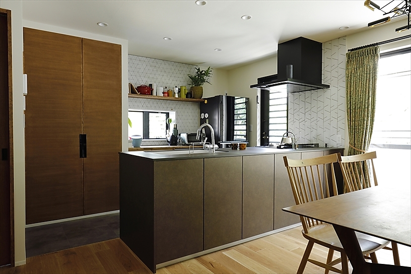 ご親族が集まるリビング・ダイニングには十分な広さを確保。みんなで使えるⅡ型のアイランドキッチンや食品庫など、ひとりの時も大勢の時にも対応可能になっています。