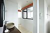 2階の和室だった部分は新たな洗面・浴室に。洗濯機置場も移設したことで、洗濯動線が改善されました。浴室には以前よりも大きなユニットバスを設置。2つの室内窓を設け、外壁の窓と出入り口と合わせて四方に開口があるという開放感抜群のバスルームに。洗面室に取り付けた洗面台はご夫妻が購入されたアンティーク家具を加工したものを使用しています。