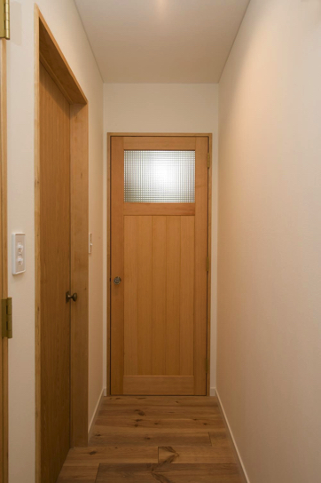 支給の建具に合わせて新規造作建具にもチェッカーガラスを入れました。