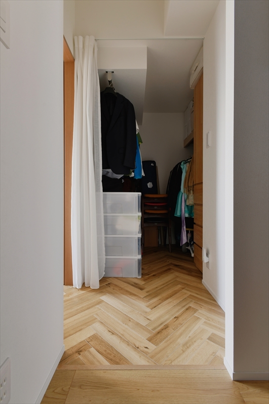 将来子ども室になる予定の個室は必要最低限の広さにして、廊下からアクセスできるファミリークローゼットを設置。収納を一箇所にまとめることで家事ラクと限られた空間の効率的な利用の両方を叶えました。