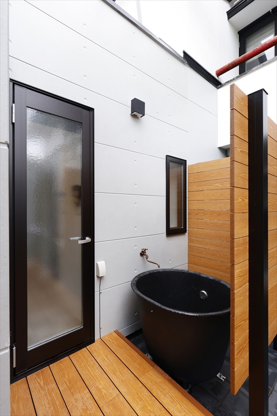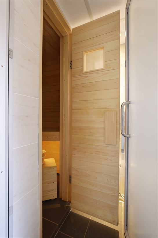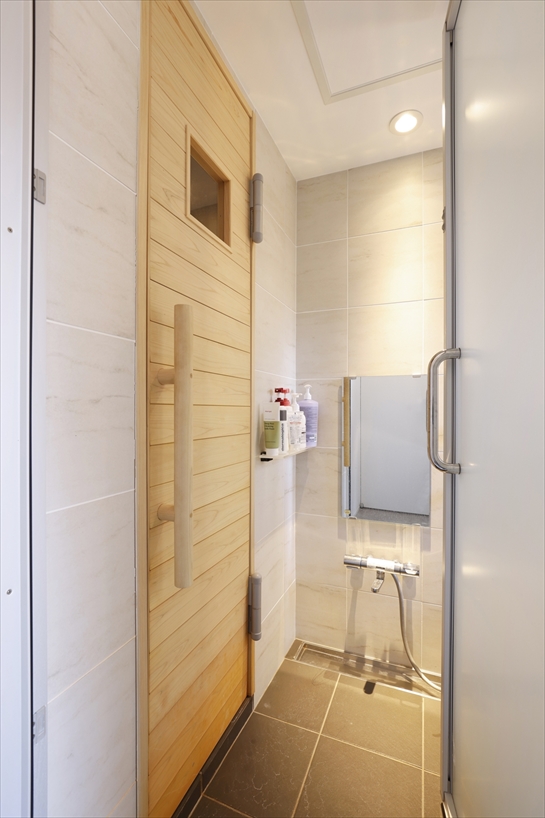 サニタリースタイルだった水廻りはトイレを独立させ、サウナ付きの浴室を実現。中庭に設置したデッキと水風呂につながる動線も確保しています。