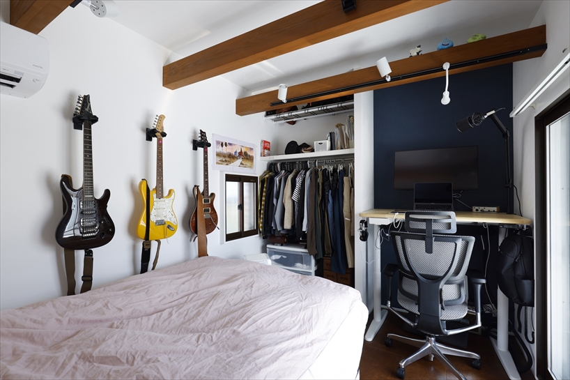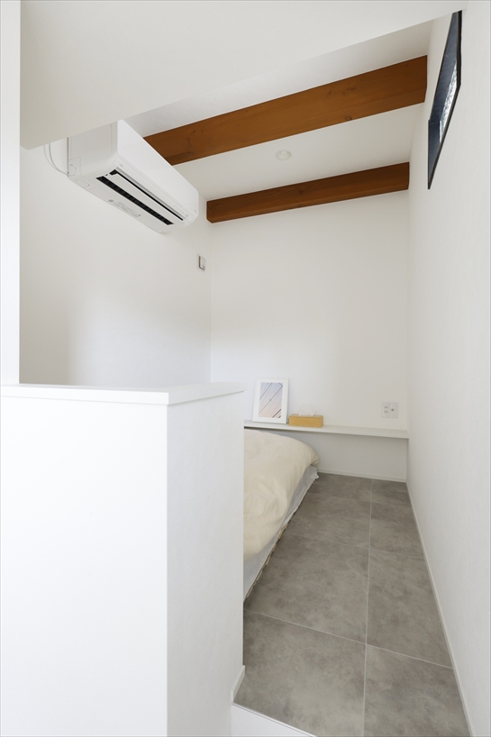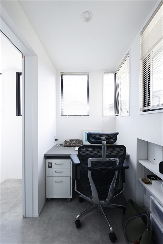 ワンルームだった2階はスキップフロアを活かしながら2つに分け、ご夫婦それぞれのワークスペース兼寝室を確保しました。
