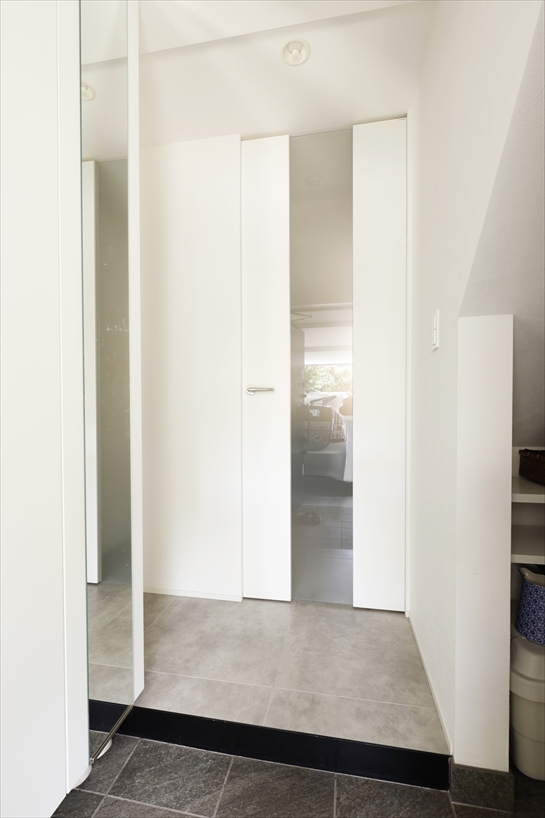 1階は玄関の位置から変更。駐車場側に移したことで雨に濡れずに乗り降りでき、荷物の上げ下ろしもラク。SICやパントリーなど、玄関周りの収納も充実させることができました。