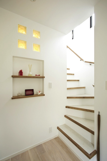 光りの差し込む心地よい空間にしたいとのことで、階段へ続く建具はガラスの入った印象的なものにしています。階段下の玄関まで明るくなりました。