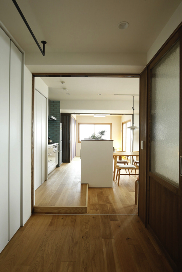 ドアや壁は造作の引戸に変えることで、開け放つとリビングから廊下までつながる一つの大空間に。光と風が隅々まで届くようになっています。